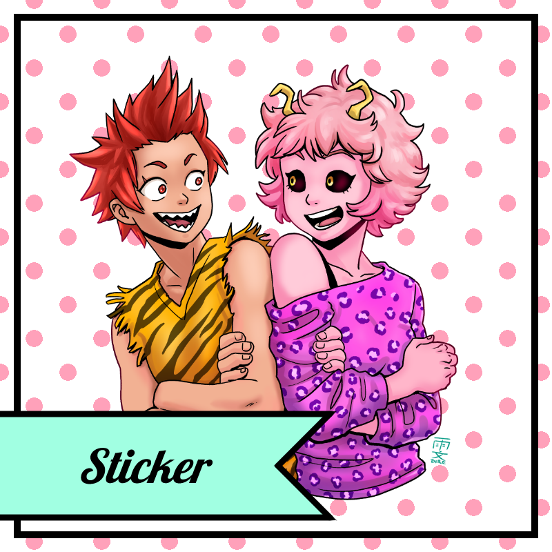 Die cut sticker of Kirishima and Mina from Boku no Hero Academia.