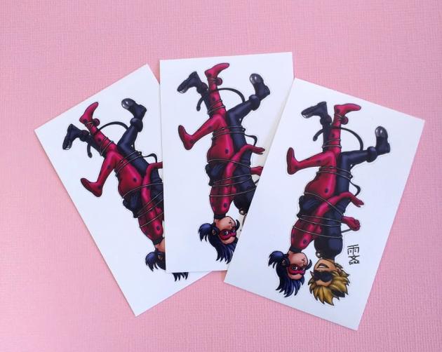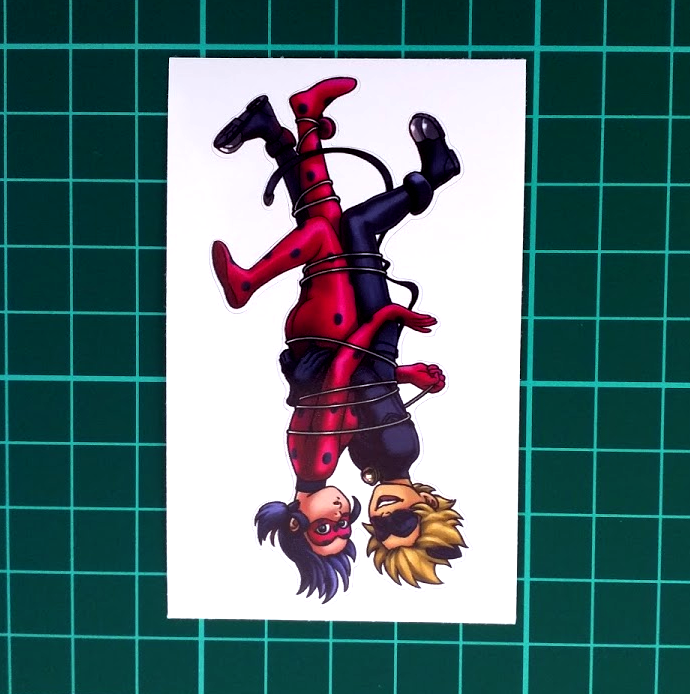 Kiss cut sticker of Ladybug and Chat Noir from Miraculous Ladybug.