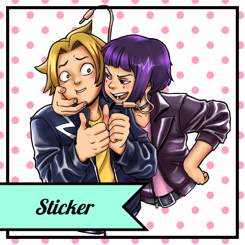 Die cut sticker of Kaminari and Jirou from Boku no Hero Academia.