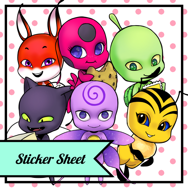 Featuring 6 of the Kwami from Miraculous Ladybug!
