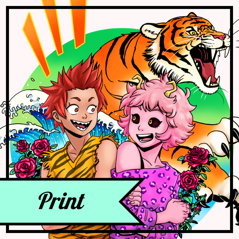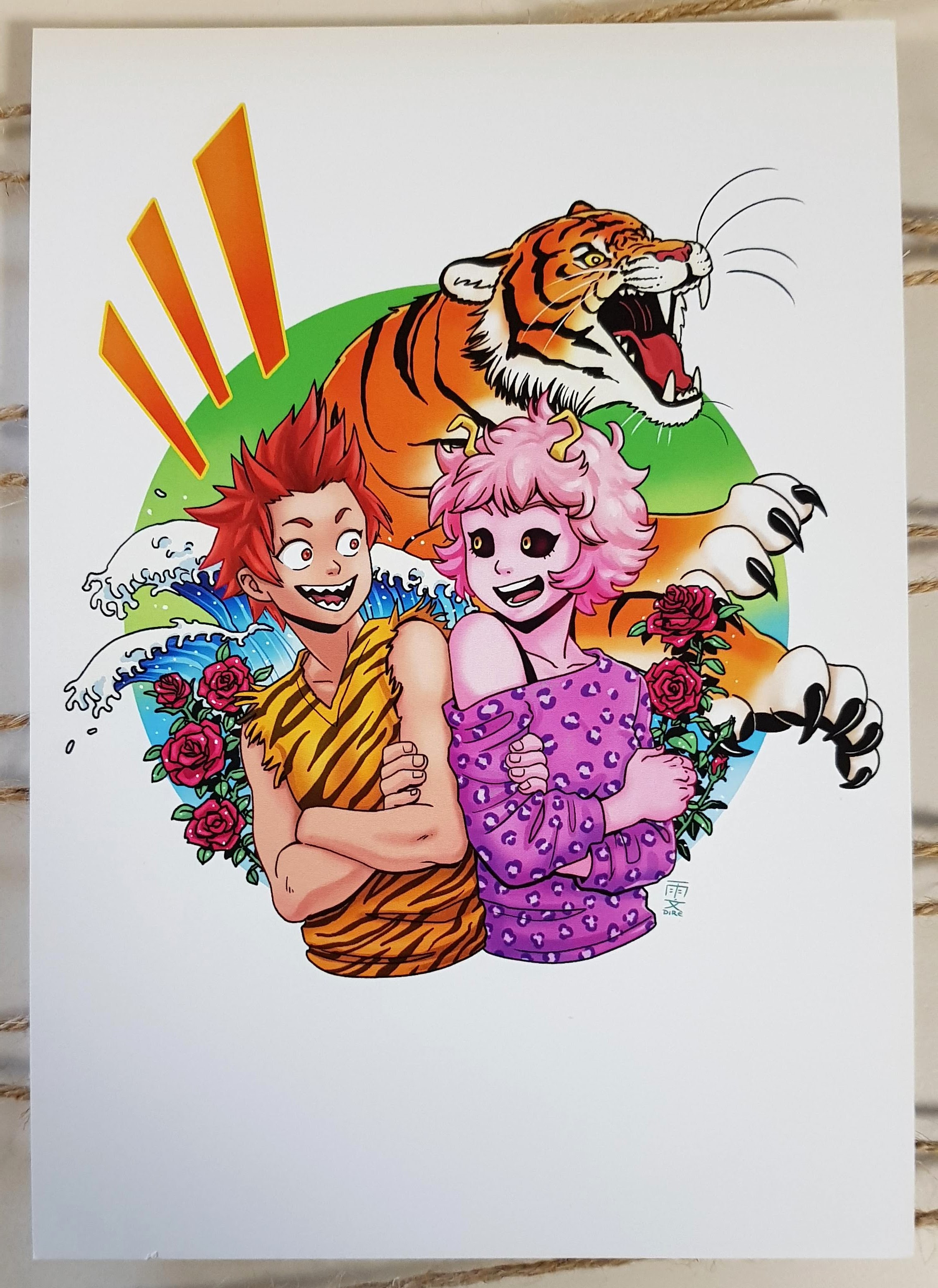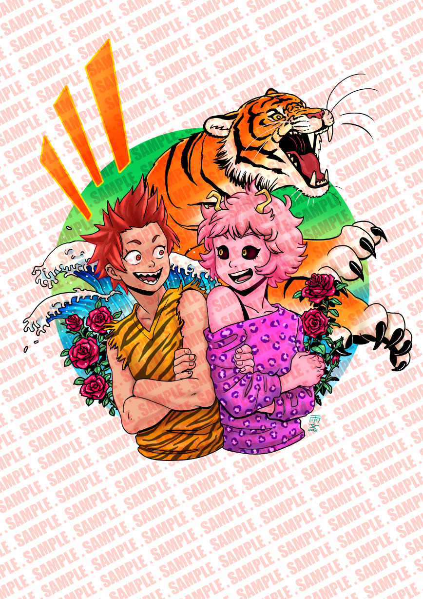 Glossy A5 print on light card stock, of Kirishima and Mina from Boku no Hero Academia.