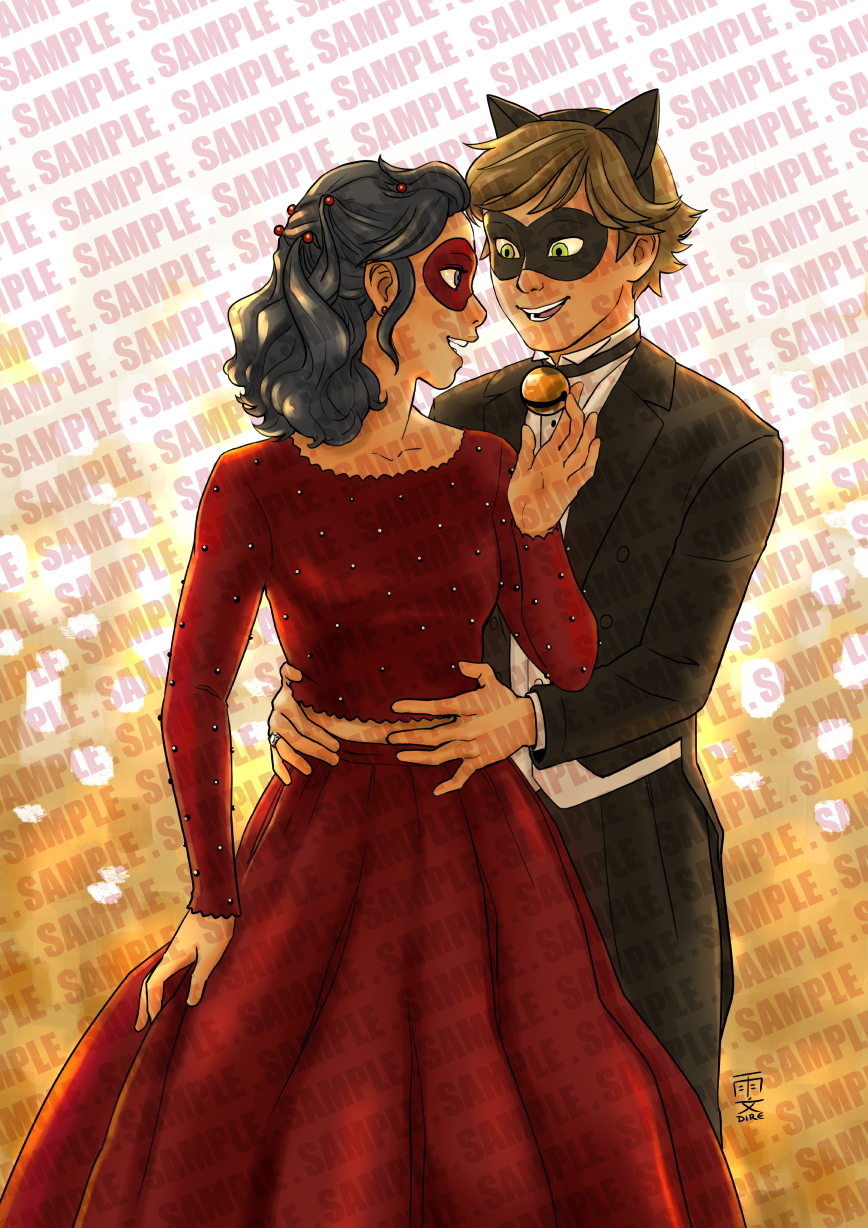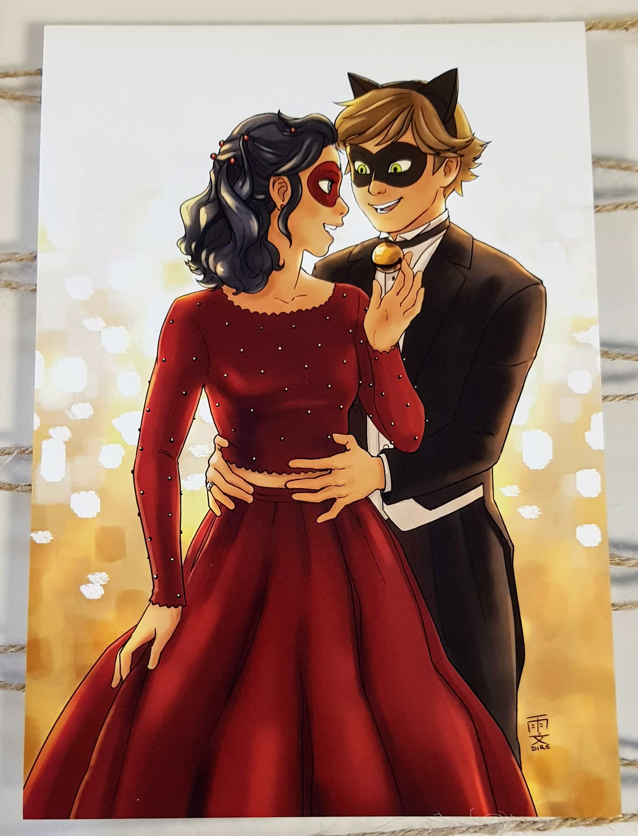 A5 print on light card stock, of ladybug and Chat Noir from Miraculous Ladybug.